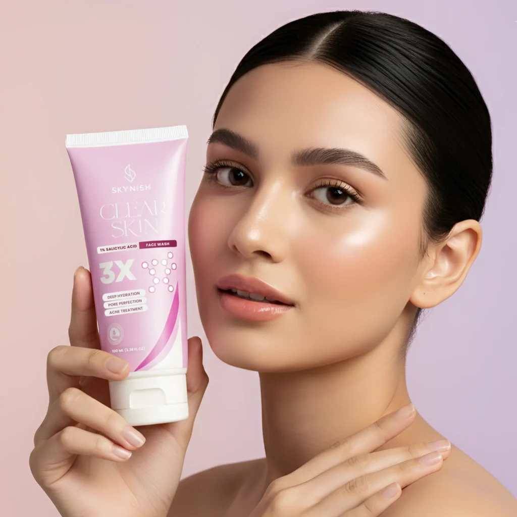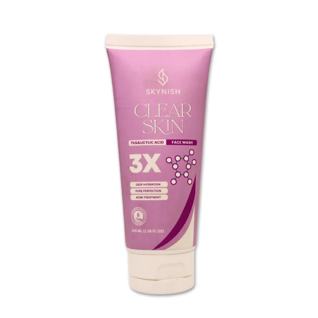 Skynish Clear Skin 3X Face Wash is a targeted cleansing solution formulated with 1% Salicylic Acid to purify pores, control oil, and reduce breakout-causing buildup. With hydrating and soothing ingredients, it delivers a balanced cleanse that leaves your skin refreshed, smoother, and visibly clearer.